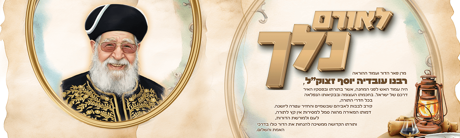 המראה את הרב עובדיה עם הכיתוב לאורם נלך
