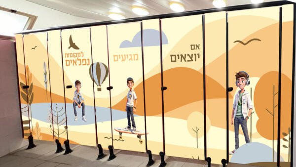כל העיצובים לדלתות השירותים מודפסים על מדבקה איכותית במיוחד, הניתנת לחיתוך צורני לפי מידות הדלת בעלות של 410 ש"ח למטר כולל מע"מ.