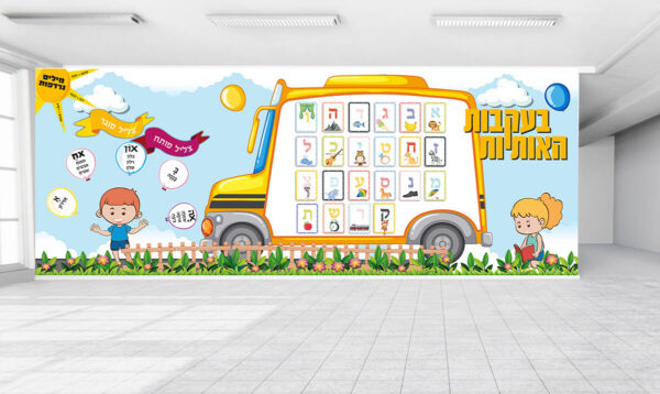 קיר צבעוני עם מיניבוס ועליו אותיות הא-ב