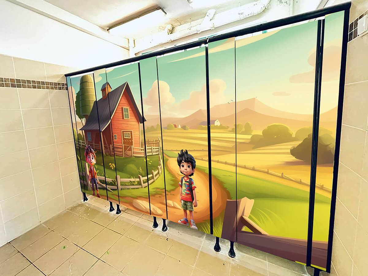 כל העיצובים לדלתות השירותים מודפסים על מדבקה איכותית במיוחד, הניתנת לחיתוך צורני לפי מידות הדלת בעלות של 410 ש"ח למטר כולל מע"מ.