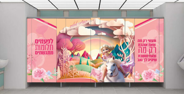 כל העיצובים לדלתות השירותים מודפסים על מדבקה איכותית במיוחד, הניתנת לחיתוך צורני לפי מידות הדלת בעלות של 410 ש"ח למטר כולל מע"מ.