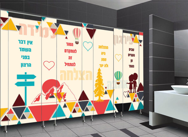 כל העיצובים לדלתות השירותים מודפסים על מדבקה איכותית במיוחד, הניתנת לחיתוך צורני לפי מידות הדלת בעלות של 410 ש"ח למטר כולל מע"מ.