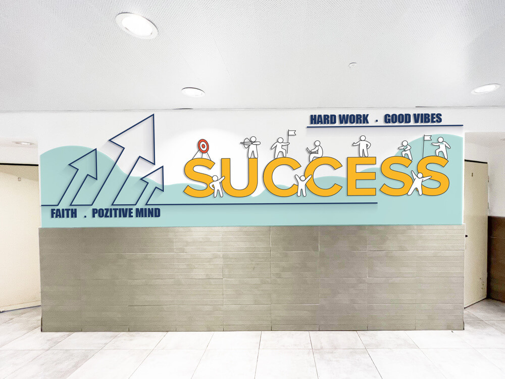עיצוב אנרגטי באנגלית שמציג את הדרך להצלחה באופן חזותי.